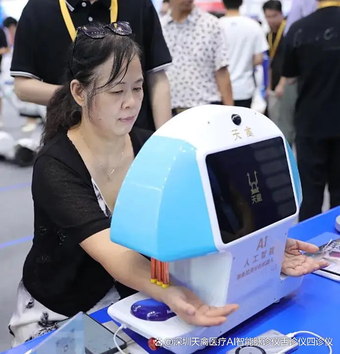 在这场汇聚智慧与创新的盛会上,天禽医疗科技作为中医智能化领域的先锋力量,携自主研发的核心产品——“天禽AI人工智能中医脉诊机器人”重磅亮相,吸引了众多专业观众、行业专家及潜在合作伙伴的目光。